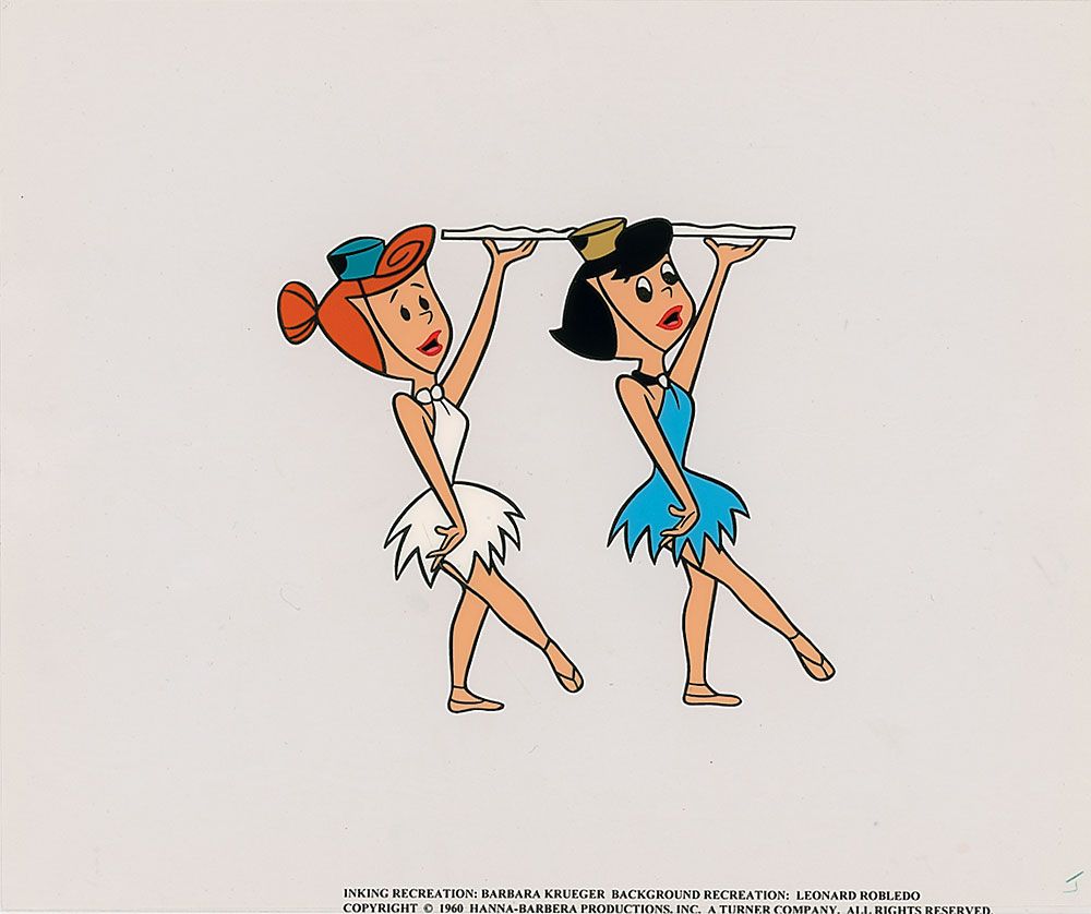 Color hand-painted publicity cel of Betty and Wilma on a 12.5 x 10.25 acetate sheet. Cel bears a printed Hanna-Barbera copyright notice to the lower right. In fine condition.
