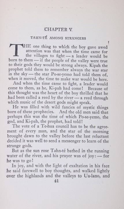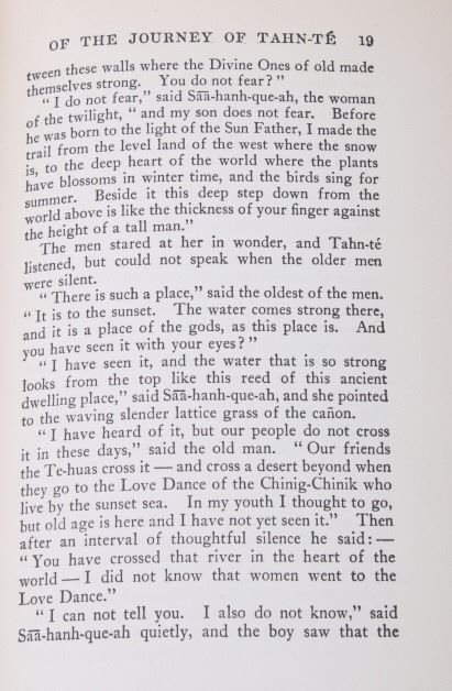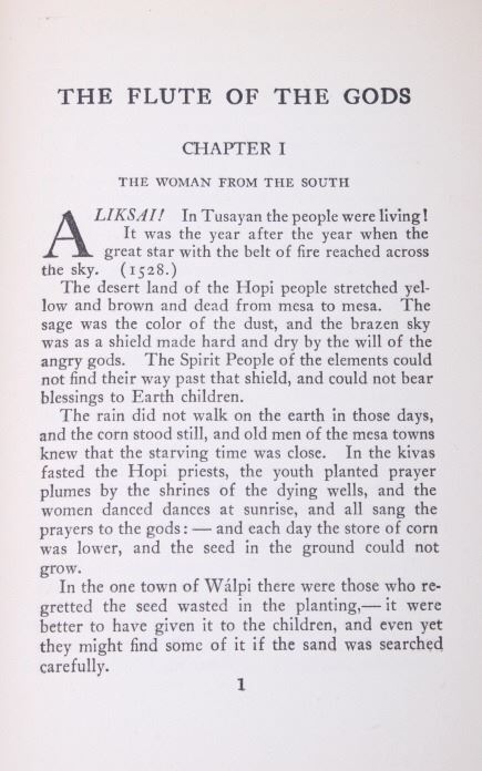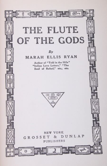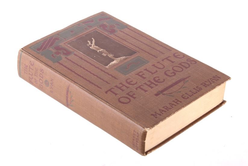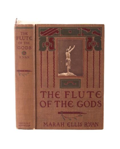 This is a first edition of "The Flute of the Gods" by Marah Ellis Ryan published in 1909. The novel features an Indian named Tahnte and his story of love and devotion. It is a very real depiction of Indian culture. The book features a paste down E.S. Curtis photograph on the front cover. The piece shows very good condition. It measures 5.75" x 8.5".