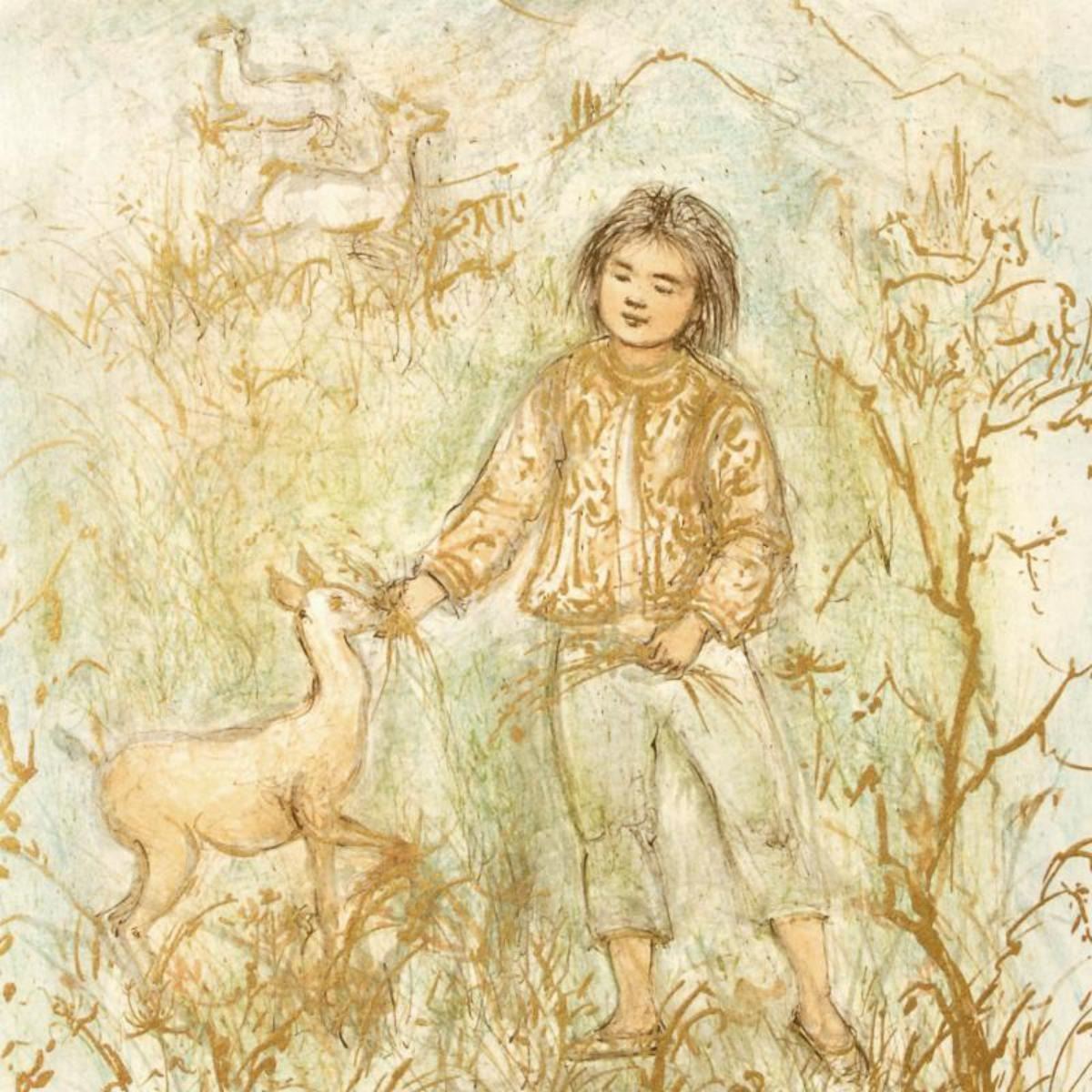 "The Forest Friend" Limited Edition Lithograph by Edna Hibel (1917-2014), Numbered and Hand Signed w