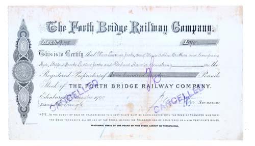 1920, Edinburgh, Scotland. Stock certificate for 710 Pounds. Black. Litho. Some light discoloration. Stamp and punch cancelled.