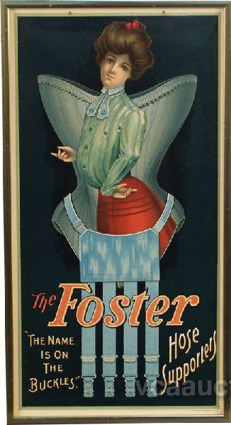 The Foster Hose Supporters Cardboard Advertisement "The Name Is On The Buckles", in frame, good condition - 9" x 17"