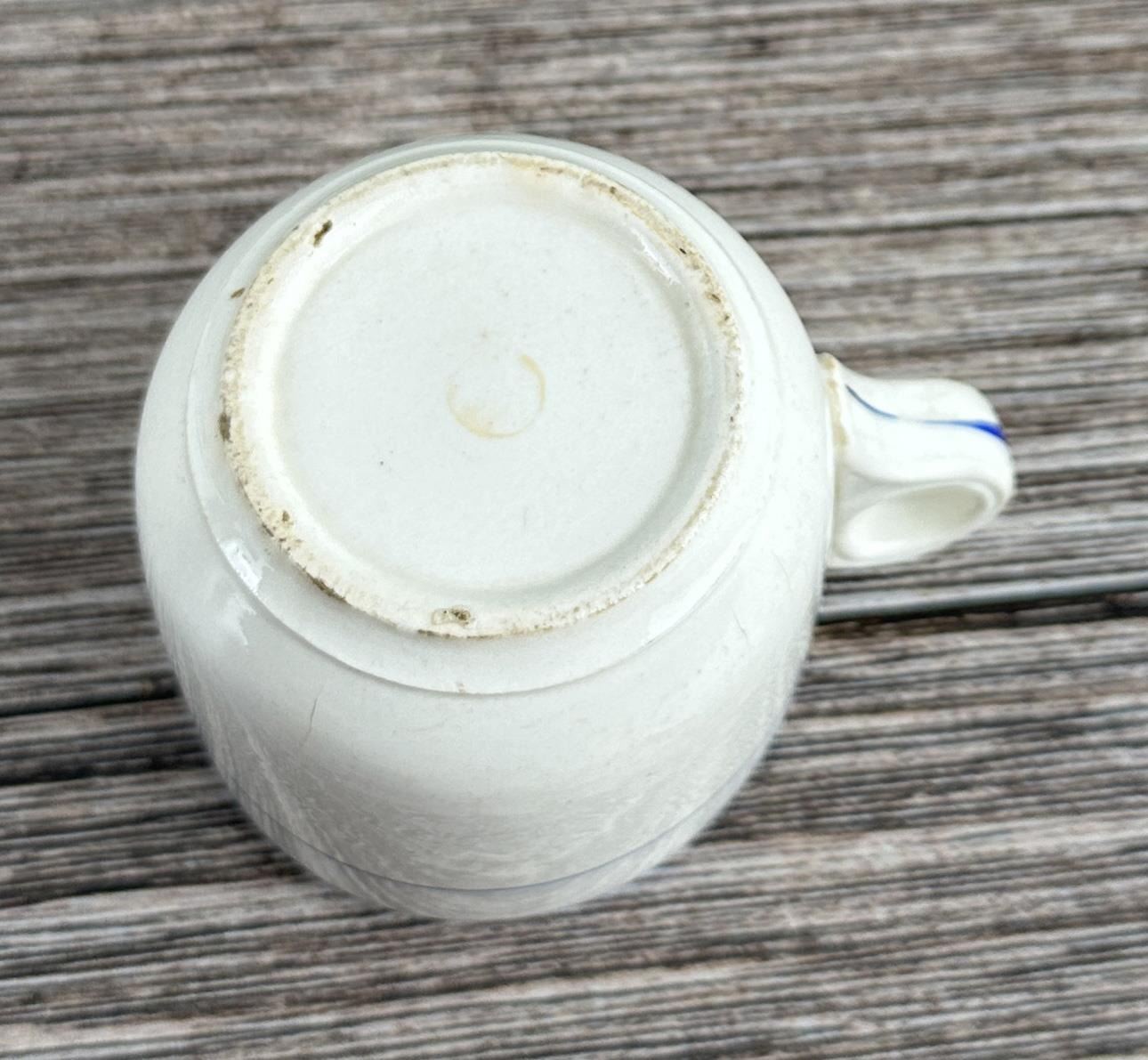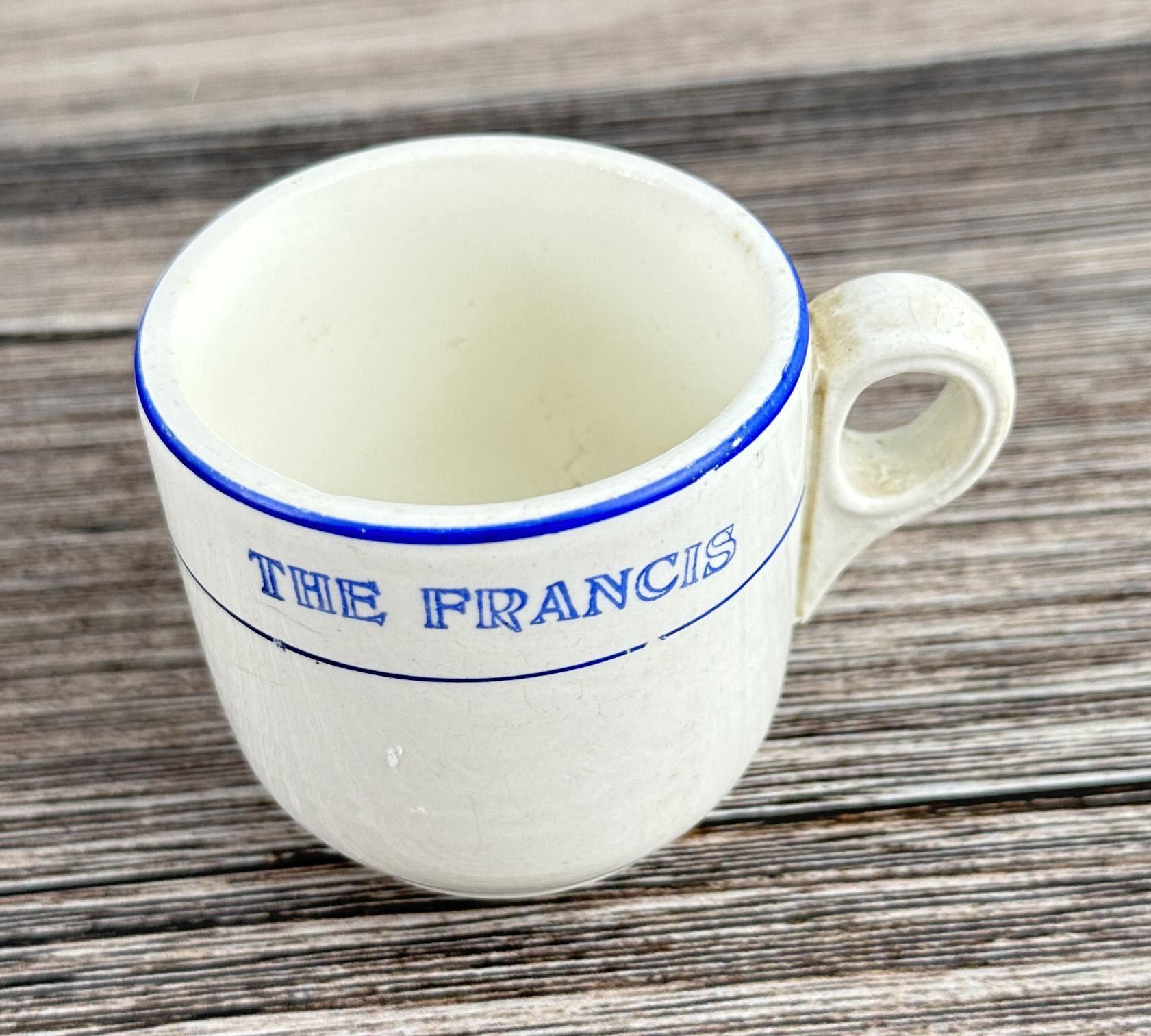 Demitasse Cup. 3" tall. An open balcony adds architectural interest to this brick apartment building, constructed circa 1912 by the proprietress of the adjacent Parisian Dye Works, Maria Paumie Rimboud. Madame Rimboud was born in Paris and always spoke French with her employees. She brought a new method of cleaning when she came to Butte in 1889 to establish the town’s first dry cleaning business. Her first husband died in 1899 and by 1910, she had married Constant Rimboud, proprietor of the Butte Dye Works. The couple lived next door at 60 West Galena and continued to manage their separate businesses into the 1920s. A series of additions link this address with the Paumie cleaning business to the north. A bracketed metal cornice, arched windows with granite keystones and sills, leaded glass transoms, and a polygonal side bay are attractive elements of the simplified bay-fronted flats that were built to provide multifamily housing during periods of rapid population growth. In 1915, the Francis Cafe occupied the ground floor, and for a short time in 1916, Madame Rimboud herself lived in the building.