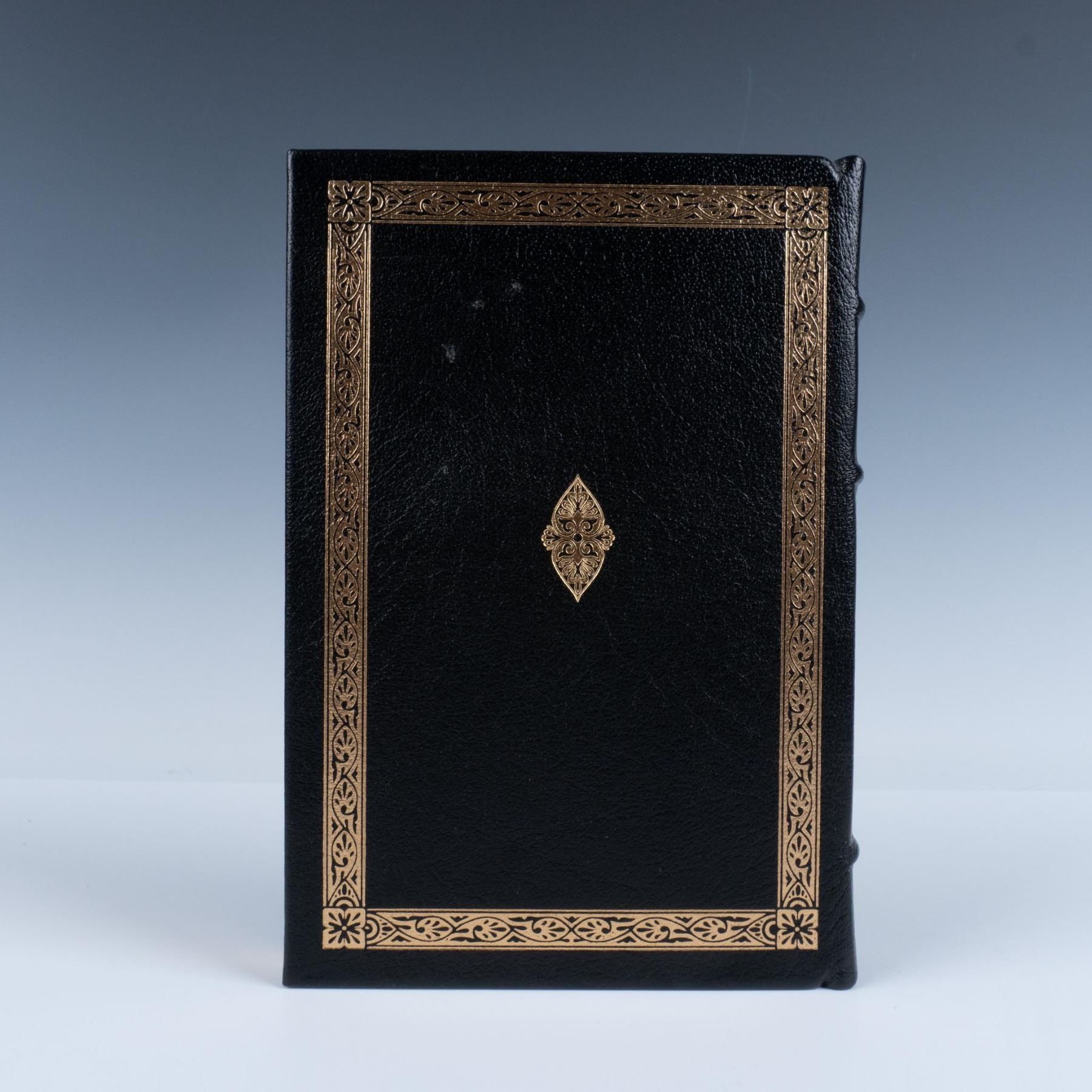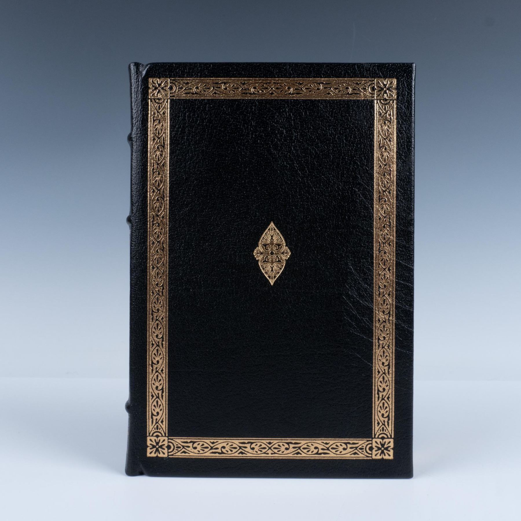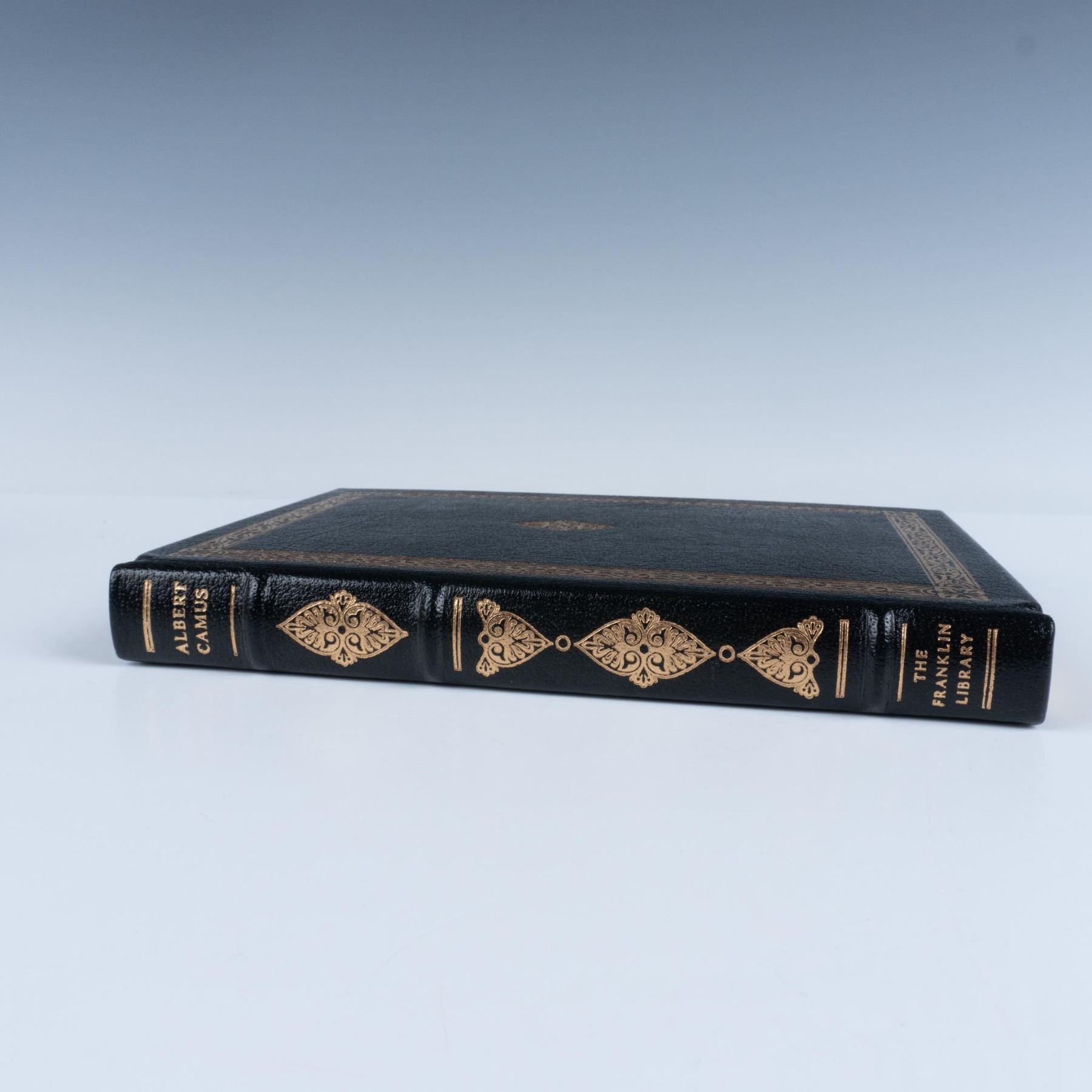 The Franklin Library limited edition book in deep black biding, raised spine bands, gold gilded page edges, and gilt decoration. Exile and the Kingdom includes six short stories by French philosopher, author, dramatist, journalist, and political activist Albert Camus. Published by The Franklin Library: Franklin Center, Pennsylvania, 1980.