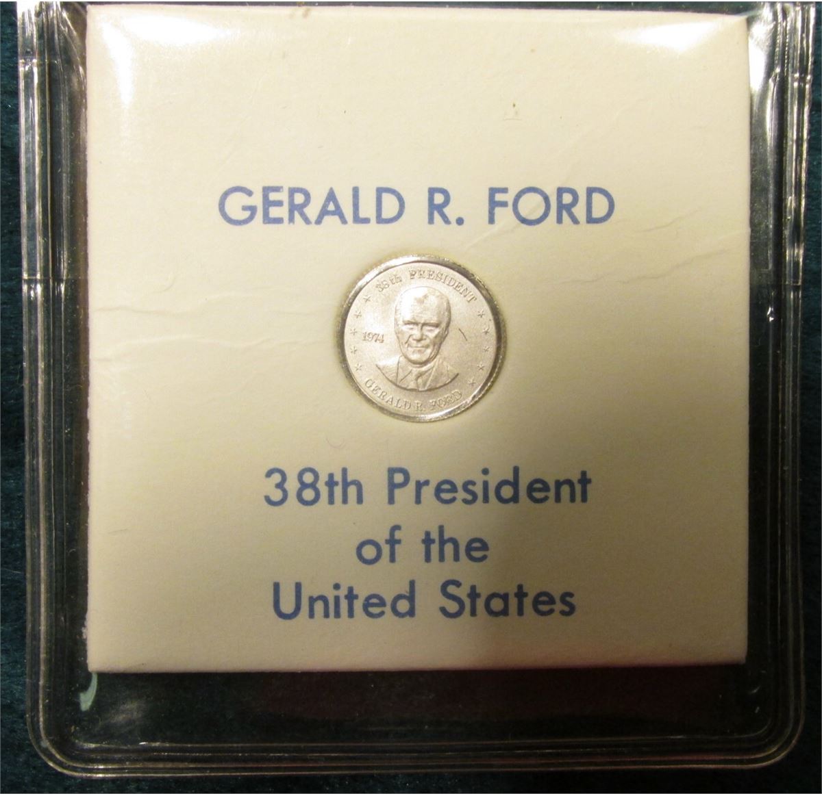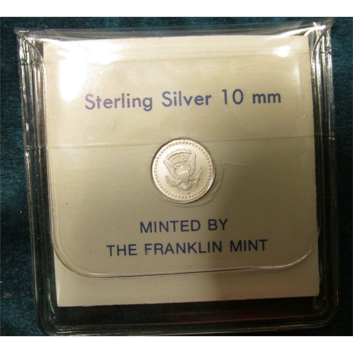 `"The Franklin Mint Presidential Mini Coin Set First Edition Sterling Silver". (35 pcs.) In original box with magnifying glass.