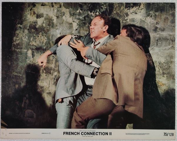 The French Connection II (20th Century Fox) lobby card. Action, Drama, Thriller. Starring Gene Hackman, Fernando Rey, Bernard Fresson, Jean-Pierre Castaldi, Charles Millot, Cathleen Nesbitt, Ed Lauter, Philippe Léotard. Directed by John Frankenheimer. Very light edge wear, some creases. Excellent. (11"x14").