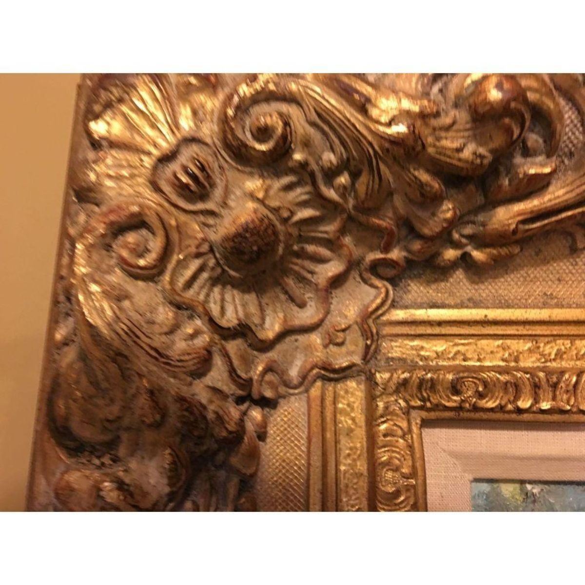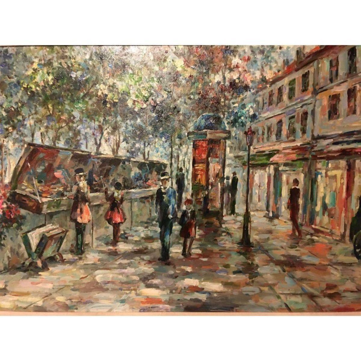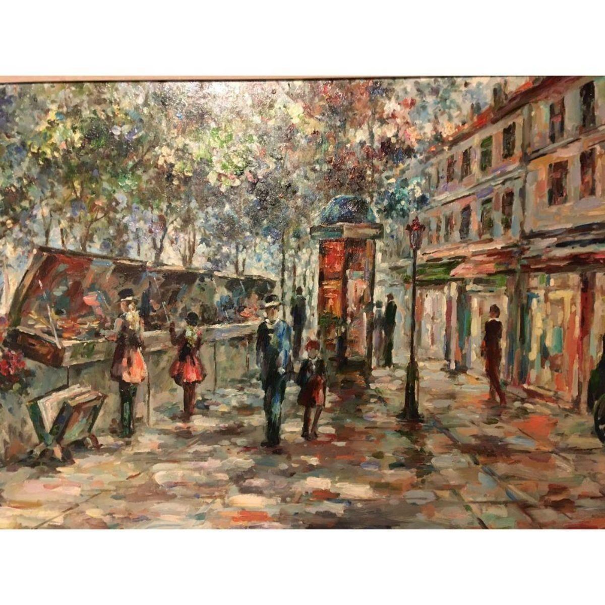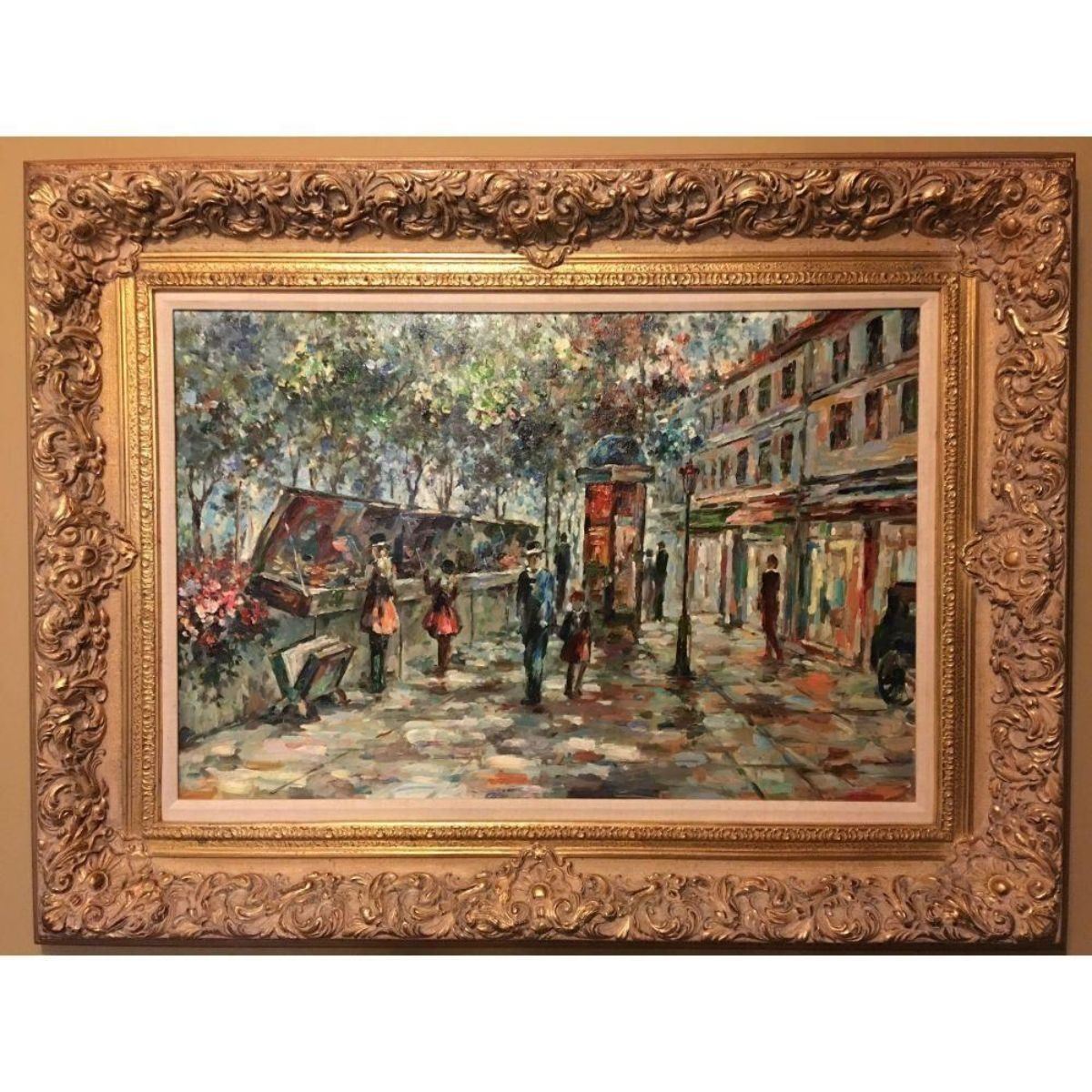 This large oil on canvas original painting depicts a French market street scene in an extraordinary frame. This framed masterpiece is 48" long by 36" tall. It has been worthy of many art galleries and private collections. You now have a chance to add it to yours.Â