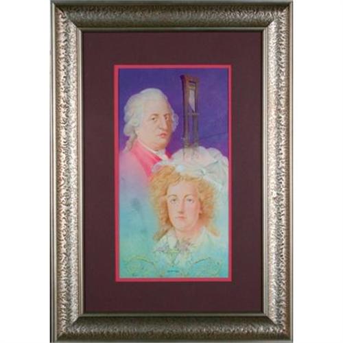 This picture is a excellent representation of Szafran?s artistic abilities. In this pastel painting he manages to take a very serious and heavy subject matter, and lighten the mood ever so slightly by using bold and cheerful colors. He does not make light of the subject, but keeps it from being to heavy and makes it an enjoyable picture to view at the same time. The use of free flowing form, on form blending into the next through vignettes is a trademark of his work. This picture is excellently framed in a silver, porous wood frame and matted in a pink and dark purple double mat that reflects the colors of the painting. Incredibly well rendered and measuring 28.25? x 20?, this picture is a great investment and a wonderful buy. Szafran?s artwork continues to increase in worth, making the purchase of his art a valuable investment.