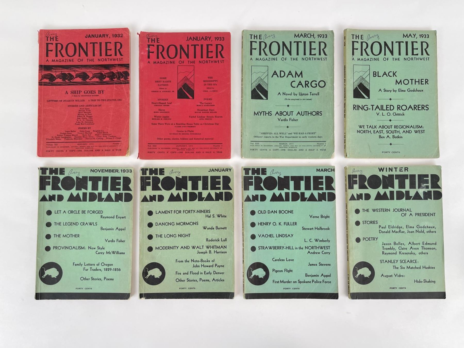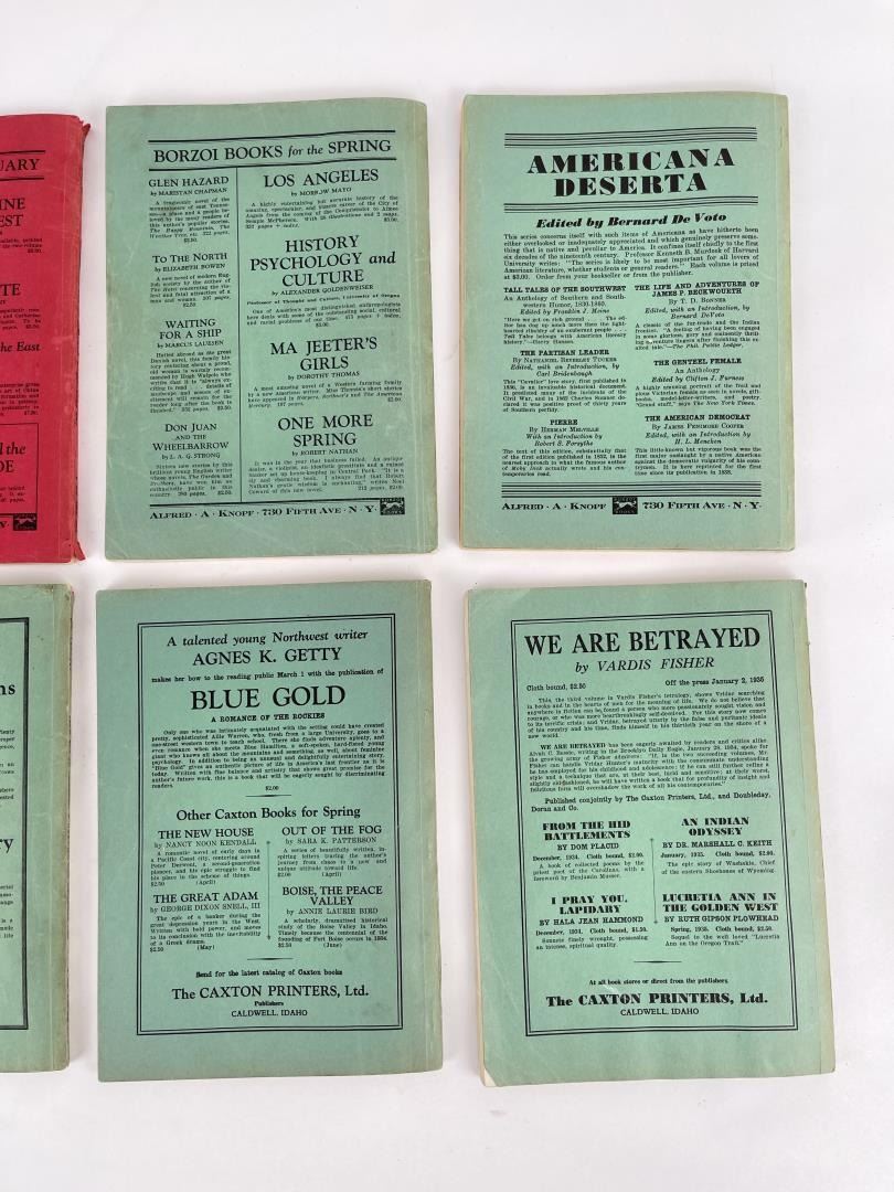 Eight issues of this history and literary Magazine published by the State University Of Montana, Missoula. Interesting articles on Montana History, including an article by a survivor of the Custer Battle. The Magazine was later titled "Frontier & Midland" was later taken over by H.G. Merriam and was published by him. It also contained essays, poems, and short stories.