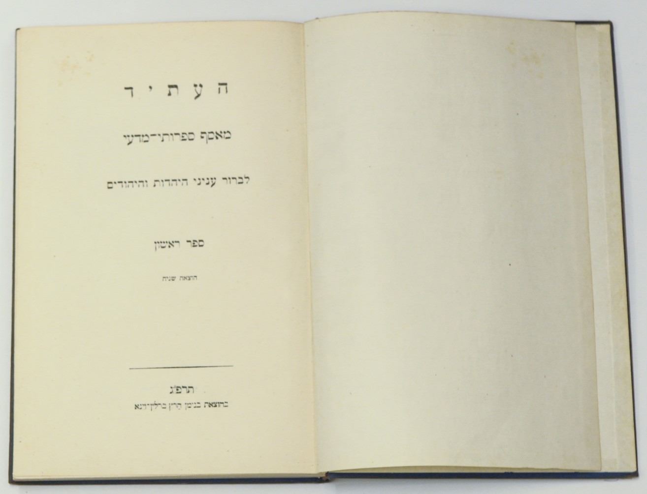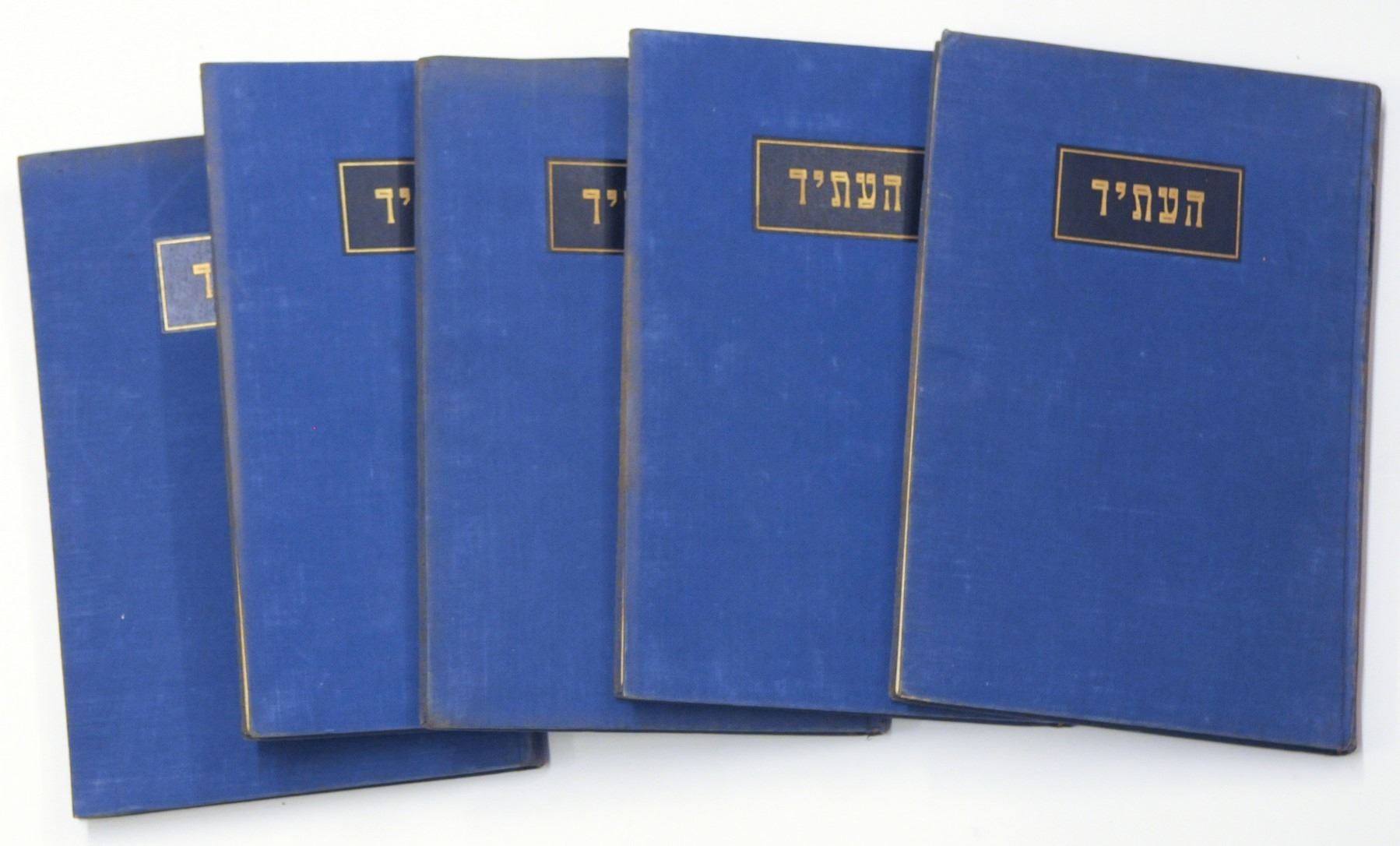 The Future: Literary Collection On Jewish Matters and Jews, 5 vol., second edition, Benjamin-Hertz Publishers, Berlin-Vienna, 1923. Very Good condition: bindings slightly worn: faded edges and backs of covers.