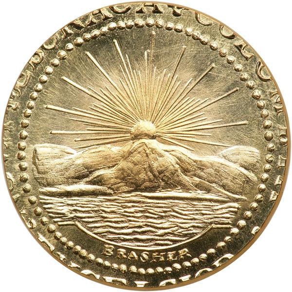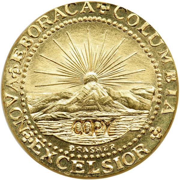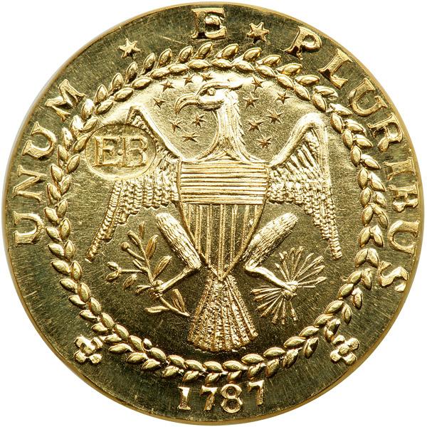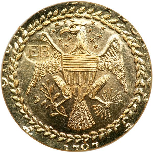 The Gallery Mint Reproduction of the 1787 Brasher Dubloon Struck in 22kt Gold. Gem Unc condition. Both have "Copy" stamped on the reverse. Contains a total of 39.2 grams . Lot of 2 coins.