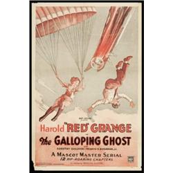 The Galloping Ghost (Mascot, 1931). One Sheet (27" X 41"). This was a 12-episode serial starring legendary college football star Harold "Red" Grange. As a 3-time All-America at the University of Illinois, Grange brought the first huge crowds to pro football when he signed with the Chicago Bears in 1925. He formed the first AFL with manager-promoter C.C. Pyle in 1926, but the league folded and he returned to the Bears. In this serial, Grange plays -- you guessed it -- a gridiron star who's been wrongfully kicked off the football team for trying to help a friend, who conspired with gamblers to throw the big game. Grange spends the serial's remaining 11 episodes trying to clear his name. This one sheet is generally regarded as the international release poster for this serial. Fine. Important notice: Heritage usually auctions material at the rate of 200-250 lots per hour. On some occasions eBay Live bid software or the Internet may not be able to keep up with the pace of the auction. We recommend placing a realistic absentee bid now as insurance to avoid disappointment. Occasionally the auctioneer may eliminate or reject an eBay Live bid, and the auctioneer may also reopen a lot after the close of the eBay live bidding (usually because we missed an audience bid), and may reject your bid even if it shows you as the winning bidder. By bidding via eBay Live, you agree that Heritage may award the lot to another bidder at its sole discretion under the circumstances described above or any other reasonable circumstances. Also please note that all Heritage lots purchased through eBay Live carry a 20% Buyer's Premium. Please make sure you read the Terms and Conditions before you bid.