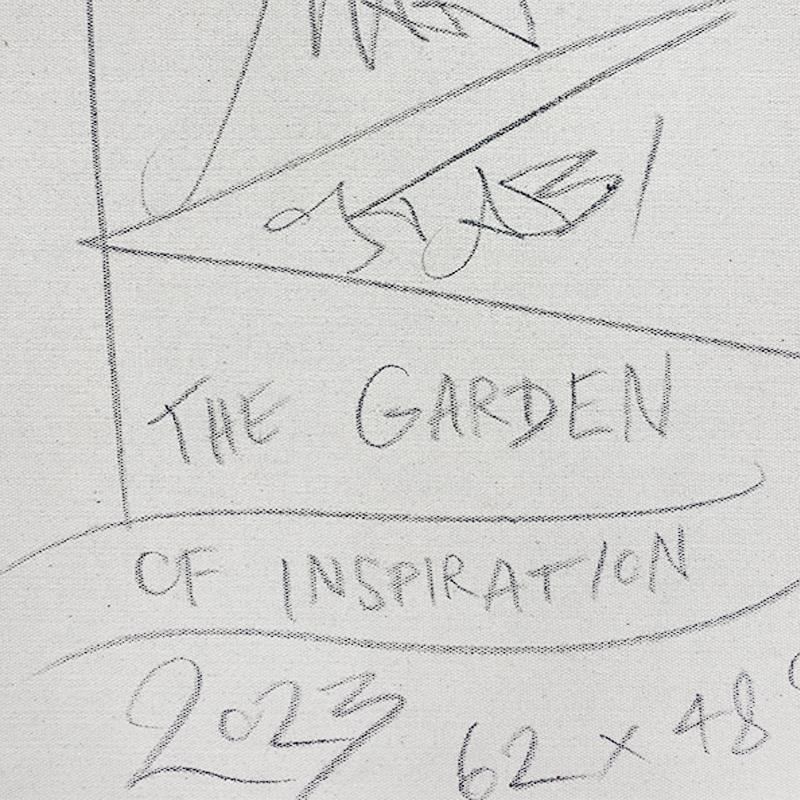 "The Garden of Imagination" is an original oil painting on canvas by Mark Kostabi, hand signed by the artist. This piece comes custom framed. Includes Certificate of Authenticity. Measures approx. 34.5" x 28.5" (frame), 24.5" x 18.5" (image).