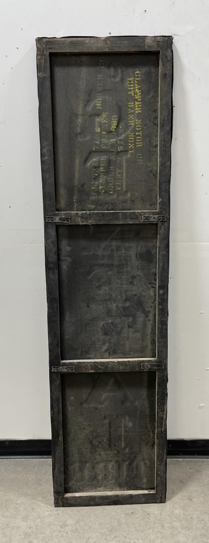 Shipped to Clapper Motor Company of Cut Bank Montana. Very nice sign on original wood frame. 18" by 69 1/2".