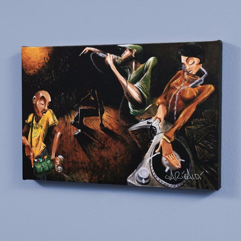 Combining his passions for music and art, David Garibaldi creates visual poetry. "The Get Down" is a limited edition giclee on stretched canvas, CC numbered from the miniature series and bearing the artist's authorized signature. This piece is gallery wrapped and ready to hang. Includes Certificate of Authenticity! Measures approx. 12" x 18" (image).