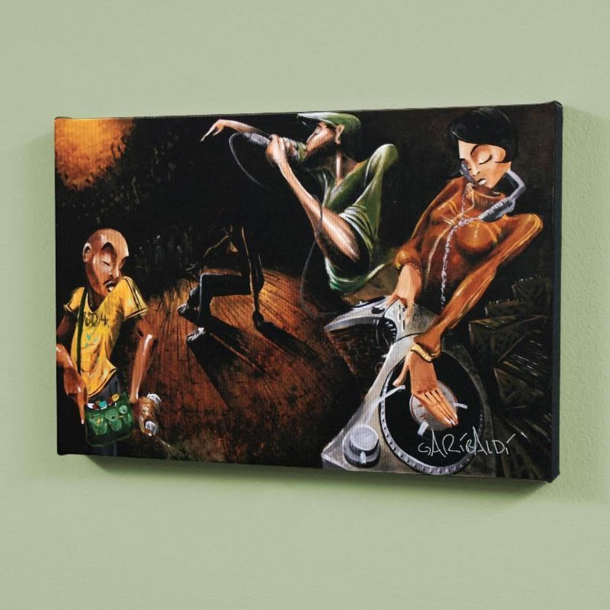 Combining his passions for music and art, David Garibaldi creates visual poetry. "The Get Down" is a limited edition giclee on stretched canvas, R numbered and bearing the artist's authorized signature. This piece comes gallery wrapped. Includes Certificate of Authenticity! Measures approx. 24" x 16" (image).