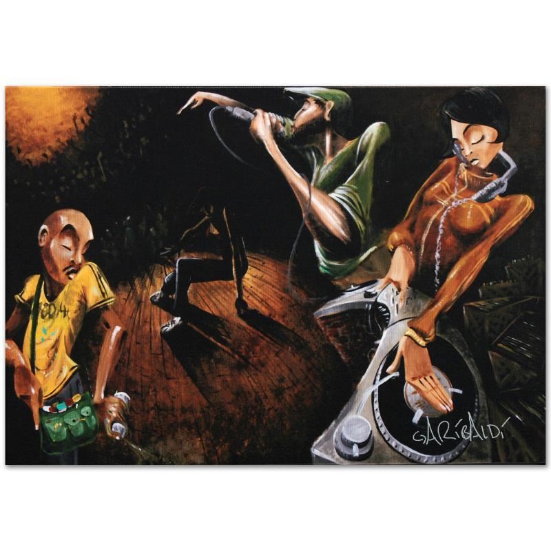 Combining his passions for music and art, David Garibaldi creates visual poetry. "The Get Down" is a limited edition giclee on stretched canvas, AP numbered and bearing the artist's authorized signature. This piece comes gallery wrapped. Includes Letter of Authenticity. Measures approx. 36" x 24" (image).