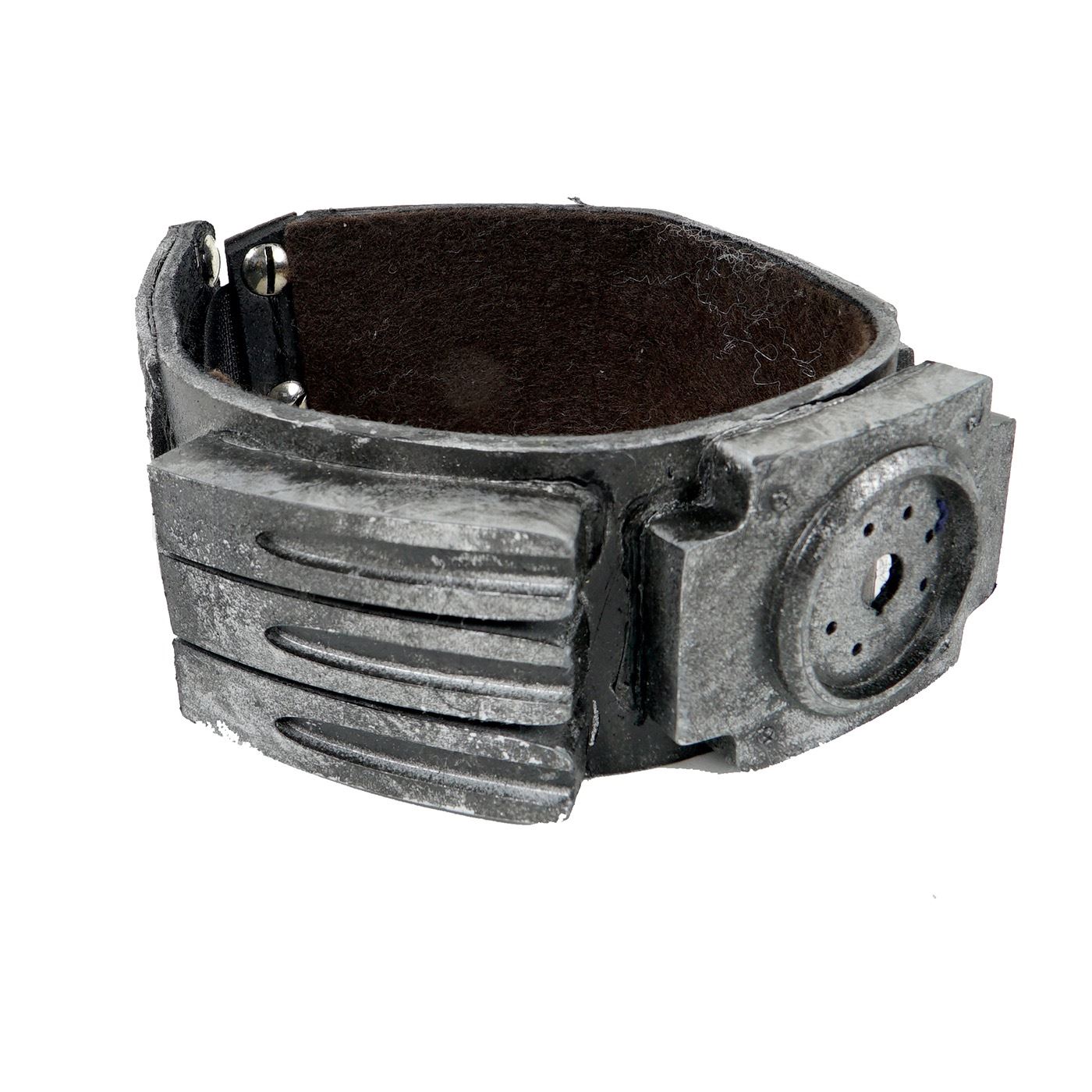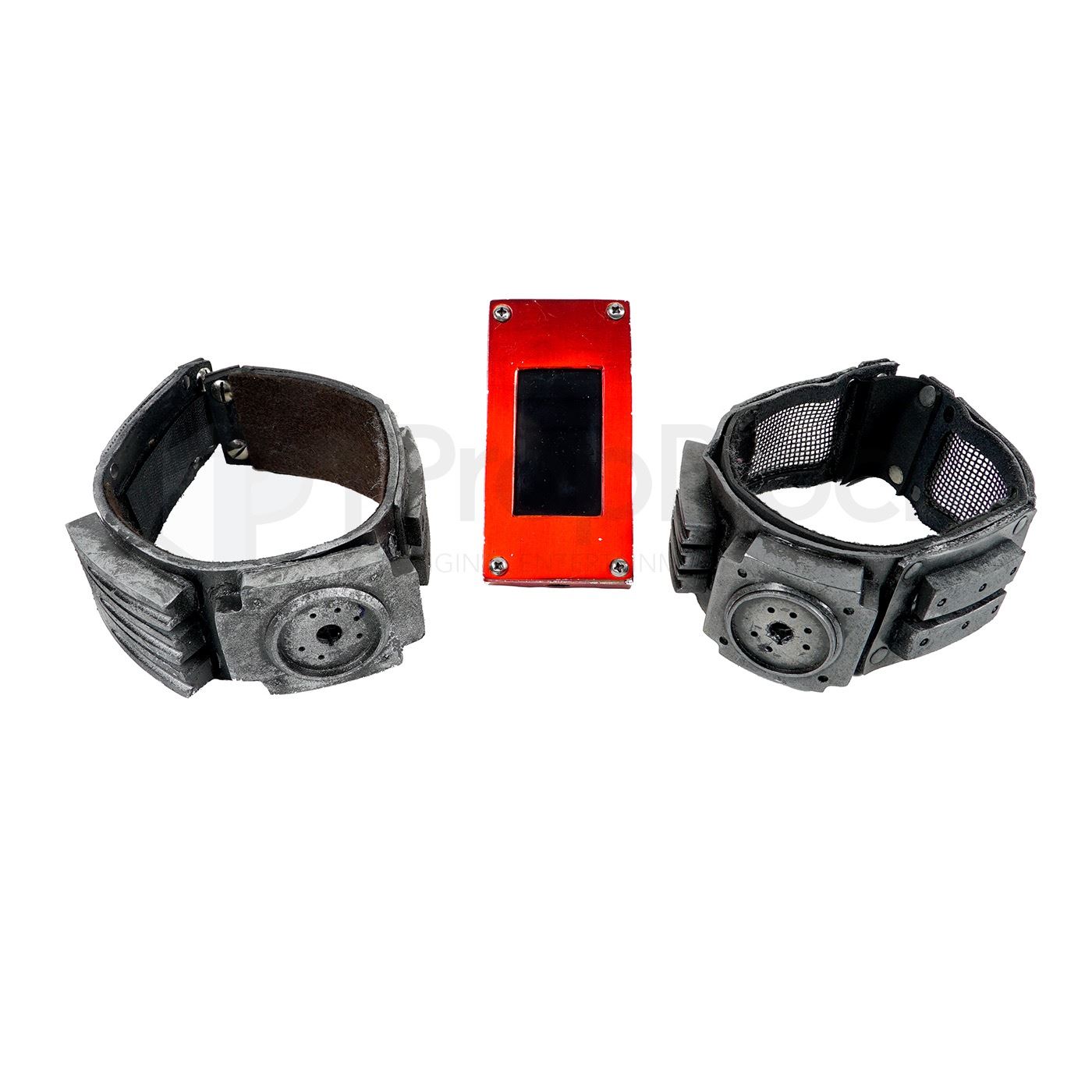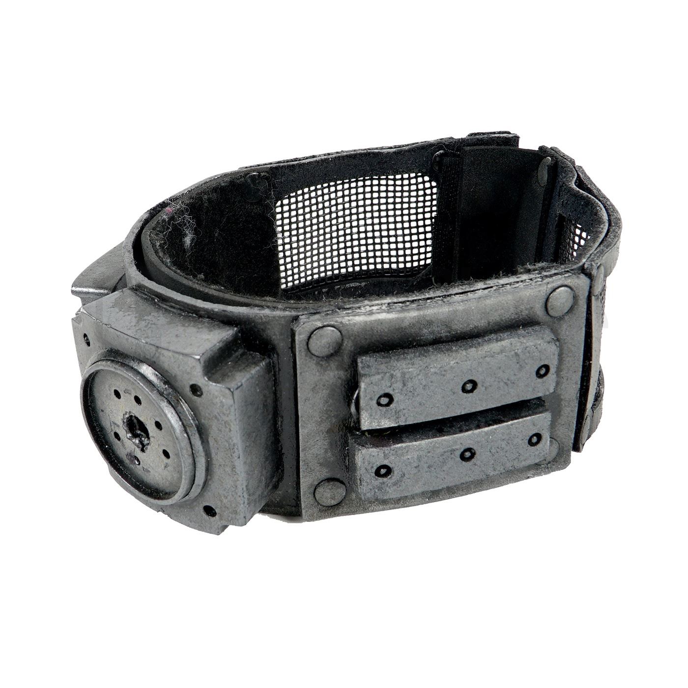 Mutant collar and remote set used in the production of the science fiction television show The Gifted. Marvel expands its footprint on the television landscape with this new family adventure series about an ordinary suburban family whose lives change course forever when they discover their children have developed mutant powers. When the threat of a hostile government forces the family to go on the run to protect themselves, they join the ranks of an underground network of mutants. Together, the group fight to survive in a world where fear and misunderstanding put them at constant risk. `X-Men' alums Bryan Singer, Lauren Shuler Donner and Simon Kinberg are among the executive producers. These collars, which were made famous in the original comics inhibited the abilities of mutants, and can be seen throughout he series run, most noticeably in the pilot episode. Each collar is made of leather with attached resin detailing and mesh sections. One collar is a hero version, featuring an LED light (not working). Included is a small red remote used by the guards in the series. The remote is made of wood with a metallic red covering and encases a cellular phone which is still in working condition. This set remains in excellent, production used condition.