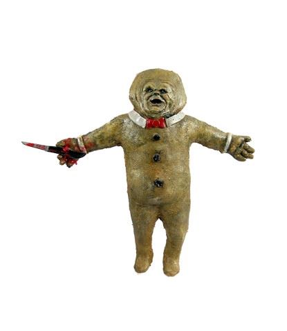 From the horror cult classic feature film The Gingerdead Man (2005) is the hero static murderous gingerbread man. This is constructed out of foam and is colored brown with amazing details. This was used in the production as a hero static puppet during filming. This measures approximately 18 1/2" x 21".