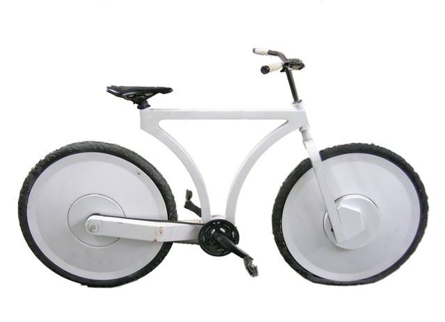 Screen used, hero, Bicycle with white metal frame and white wheels.