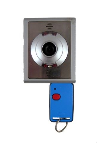 Screen used, hero, plastic eye scanner and blue remote. (approx. 4" x 3")
