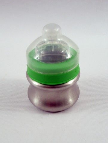 Gabriel's screen used, hero, 'Kid Kanteen' silver and green baby bottle. (approx. 4 1/2" tall)