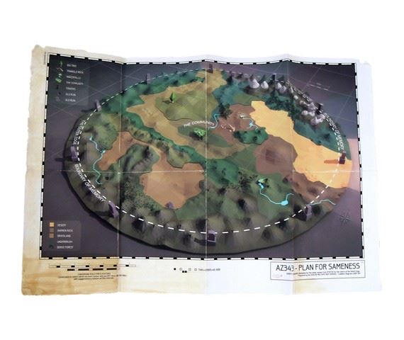Jonas (Brenton Thwaites) screen used, hero, lightly worn, AZ343 - Plan For Sameness community map. (approx. 23" x 16")