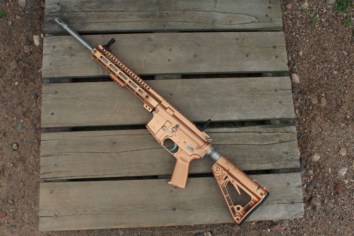 The rifle’s coating design was a collaboration between Natalie Foster and Amy Lauer-Potaczek. The custom new Rosegold DuraCoat® was used along with accents in DuraCoat® Pewter. A special Mint Green DuraCoat® was used on the trigger for a fun, modern touch. DuraCoat® is the Finest Firearm Finish on the Planet™.