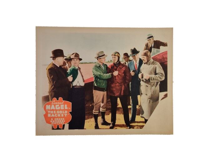 The Gold Racket (George A. Hirliman Productions. Distributed by Grand National Pictures, 1937) lobby card. Crime Drama, Film Noir. Starring Conrad Nagel, Eleanor Hunt, Fuzzy Knight, Frank Milan, James Duffy, Albert J. Smith, Warner Richmond, Charles Delaney, Karl Hackett, William L. Thorne, Edward LeSaint. Directed by Louis J. Gasnier & Joseph H. Lewis. Minor edge wear. Near Mint. (11"x14").