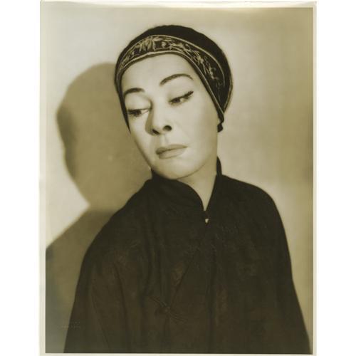 <B>The Good Earth - Film Still of Paul Muni and Theatre Portrait of Nazimova.</B></I> <I>The Good Earth,</B></I> Pearl Buck's powerful novel of the awesome trials and tribulations of a Chinese couple, made the transition to both stage and screen. This lot commemorates both versions. A 10" x 13" MGM still shows Paul Muni as Wang Lung and Charley Grapewin as Wang Lung's father in this spectacular film, the final picture produced by MGM's famed Irving Thalberg (who died before its release). Luise Rainer won her second Academy Award for her portrayal of "O-Lan" in <I>The Good Earth.</B></I> Also included is a stunning 11" x 14" theatre portrait, showing the legendary Alla Nazimova as "O-Lan" in the Theatre Guild's production of <I>The Good Earth,</B></I> which opened in New York October 17, 1932. (Claude Rains played Wang Lung in this stage production.) The back of the film still has a stamp by MGM, noting the photo is by Frank Tanner, as well as the original snipe mentioning Muni, Grapewin, Thalberg and director Sidney Franklin. The back of the theatre portrait has Nazimova's name and the play's title in pencil, as well as a stamp from the Vandamm Studio in New York. Both items in excellent condition.