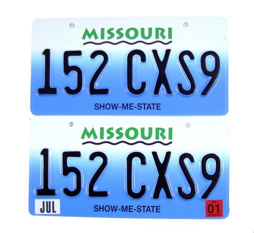 Jack (Corey Stoll) screen used, hero, two worn Missouri plastic license plates from his Mustang.