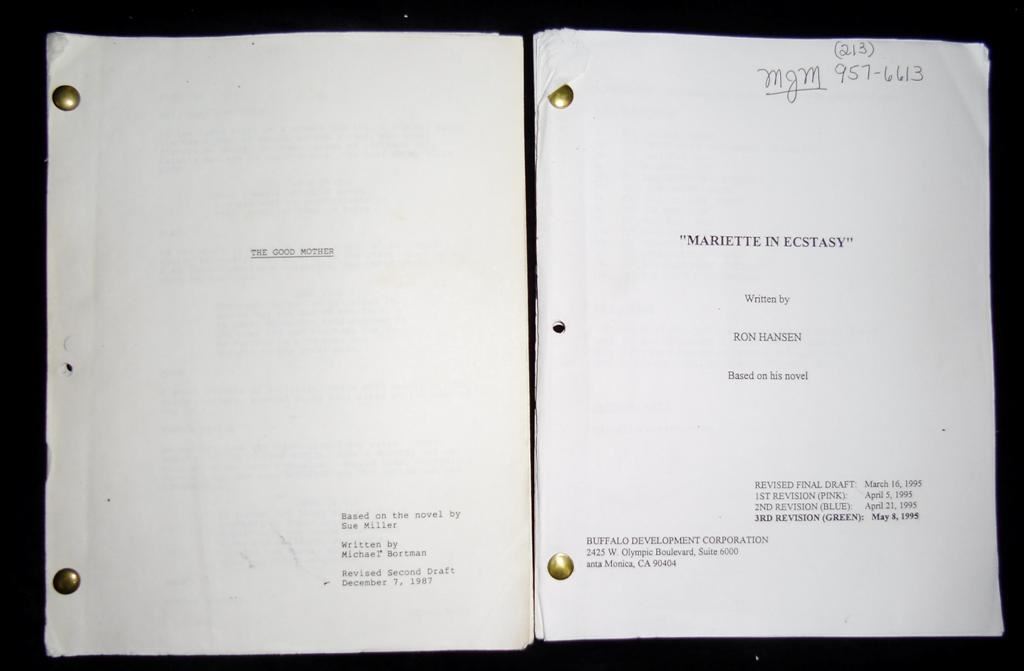 The Good Mother (1988) - Directed by Leonard Nimoy - written by Michael Bortman and dated 12/7/87 - Marriette in Ecstacy (1996) - written by Ron Hansen starring Rutger Haur and Mary McDonnell and dated 5/8/95