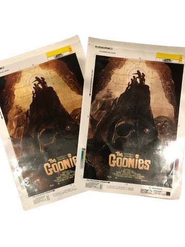 The Goonies poster studio proof from its 2021 relaunch . There are two proofs with approval stickers on the back.