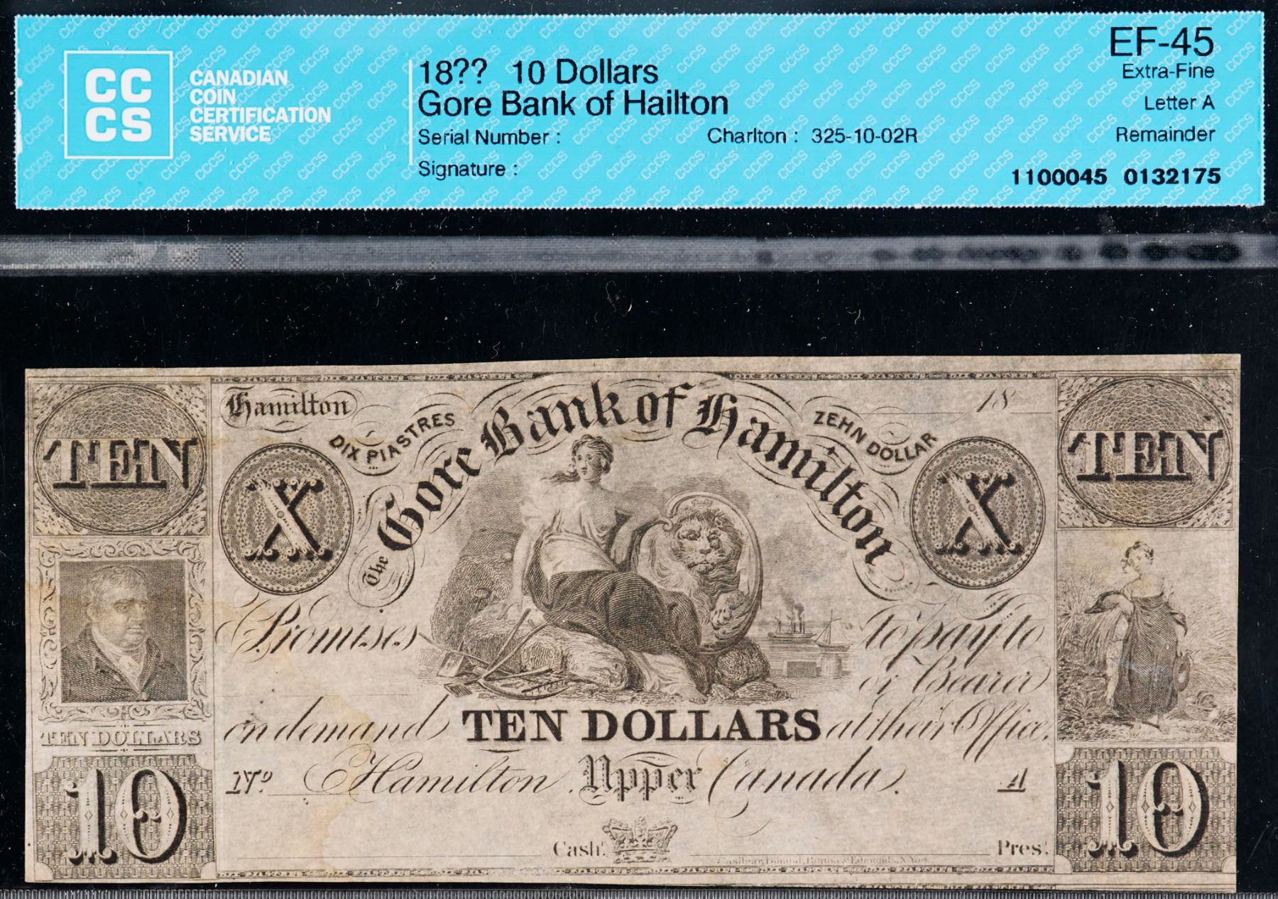 The Gore Bank of Hamilton $10 letter A CH-325-10-02R CCCS Choice Extra Fine-45