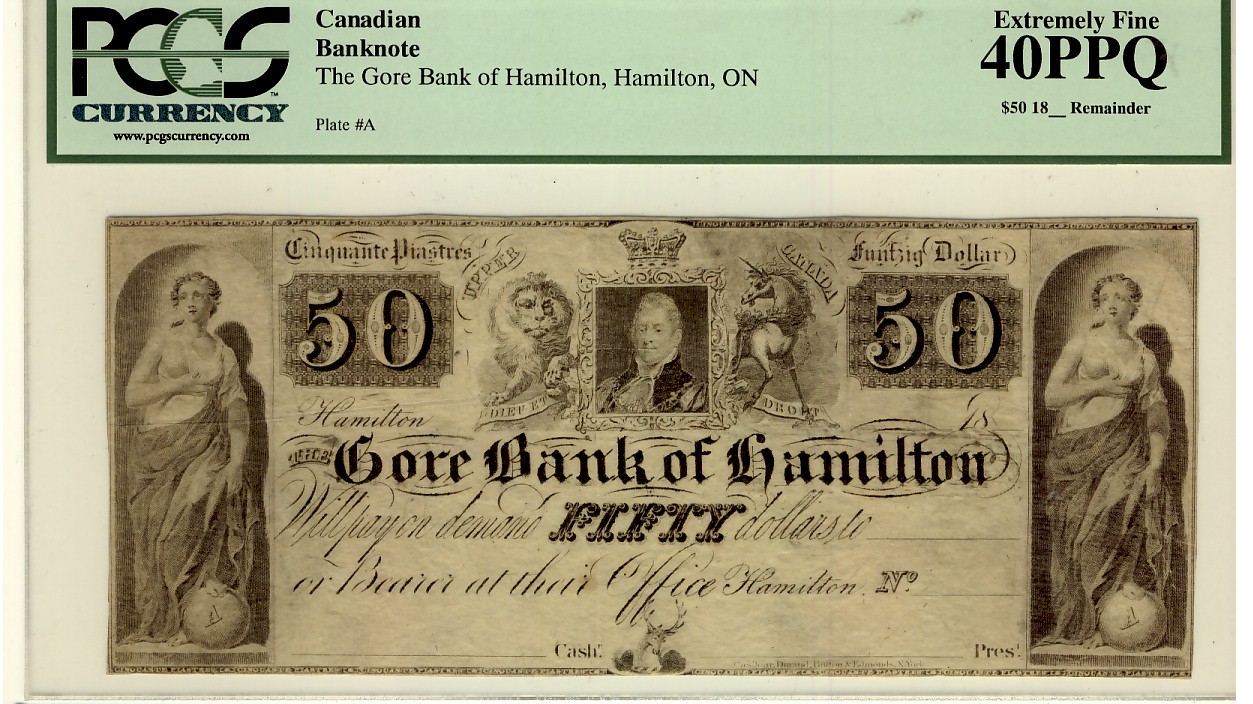 The Gore Bank of Hamilton 18-- $50 CH-320-10-06R PCGS EF40PPQ