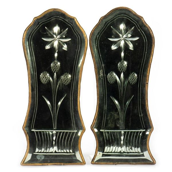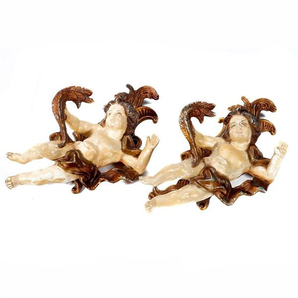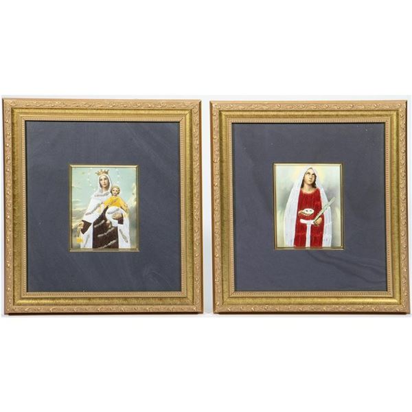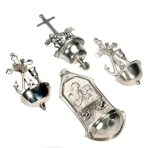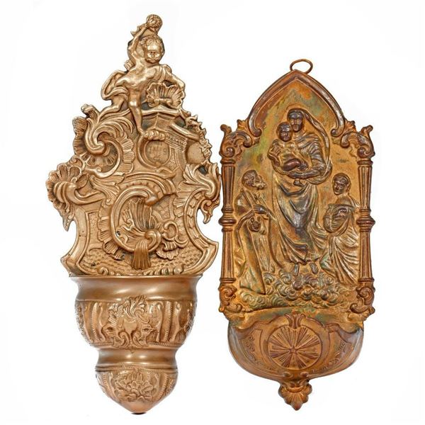 One with Madonna and Child, the other with a cherub; each with a receptacle/font. One embossed on back: "J B 1814." 9 1/4in. and 7 3/4in. ...