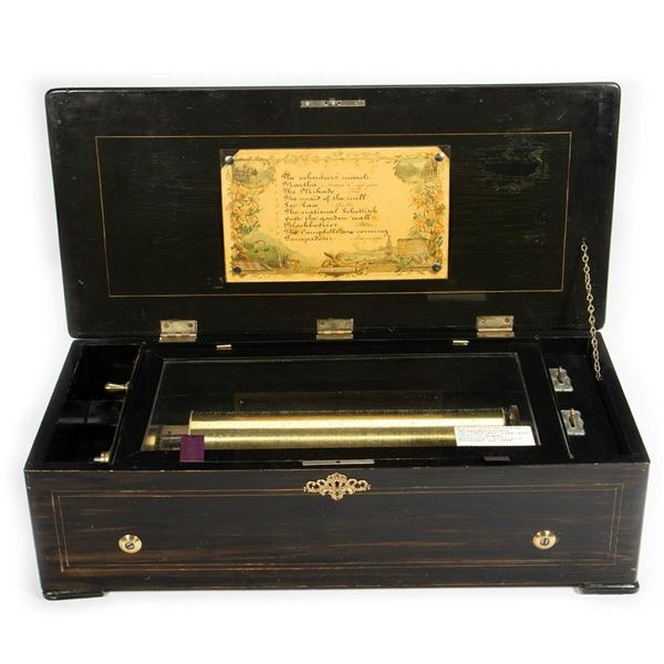 Geneva, Circa 1875. Made for the Scottish Market, playing ten songs. According to the accompanying documents it was restored in 1989. Contained in an
