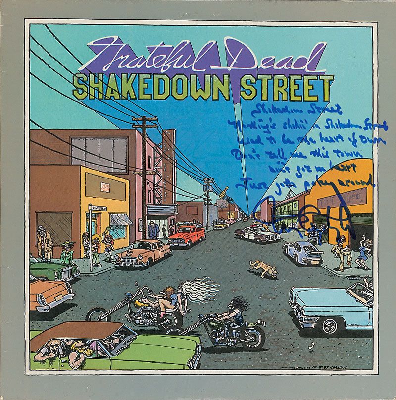 Shakedown Street album signed on the front cover in blue felt tip by Constanten, who also writes out the chorus of ‘Shakedown Street.’ In fine condition, with a few light creases. The record is included.