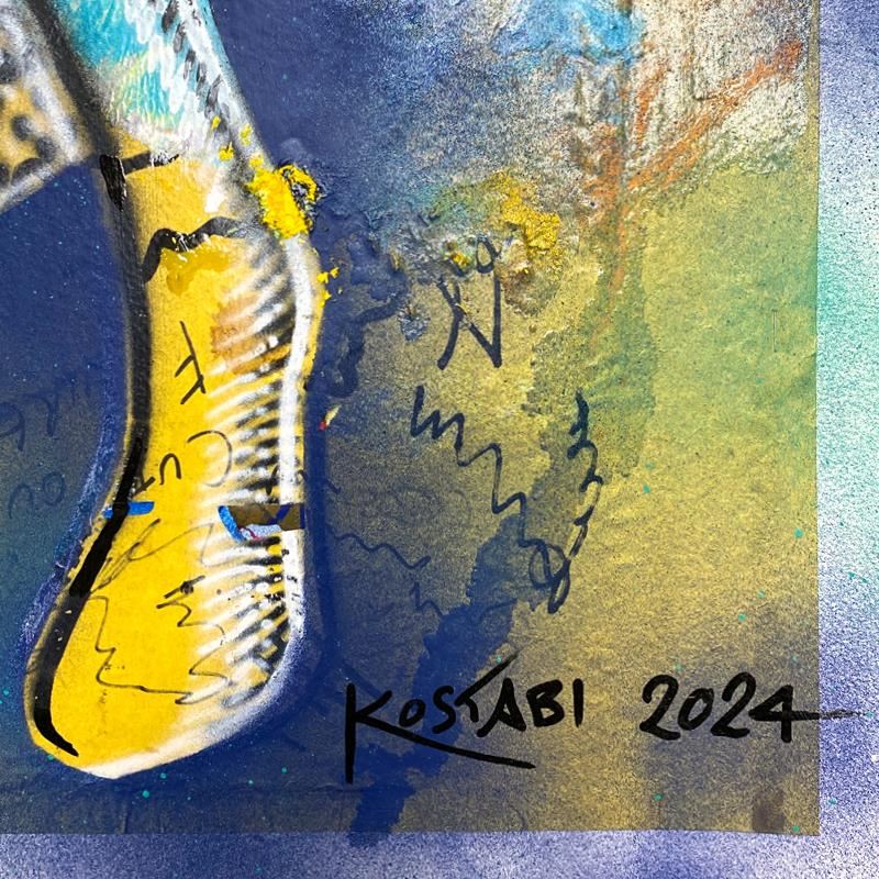 "The Gravity of Self" is an original mixed media painting on paper by Mark Kostabi, hand signed by the artist. The piece comes framed. Includes Certificate of Authenticity. Measures approx. 48" x 35.5" (frame), 42" x 29.5" (image). This item requires special handling and may have a longer than usual turnaround.