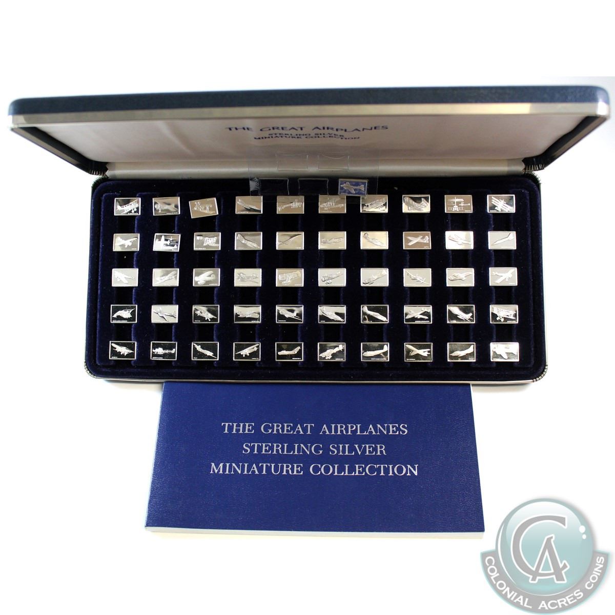 The Great Airplanes Sterling Silver Miniature Collection. This set contains 51x Miniature Sterling Silver Ingots from the Franklin Mint and Comes in a blue display case with a booklet containing the COA and information on each of the planes featured in the set. Includes one extra Ingot. 51pcs
