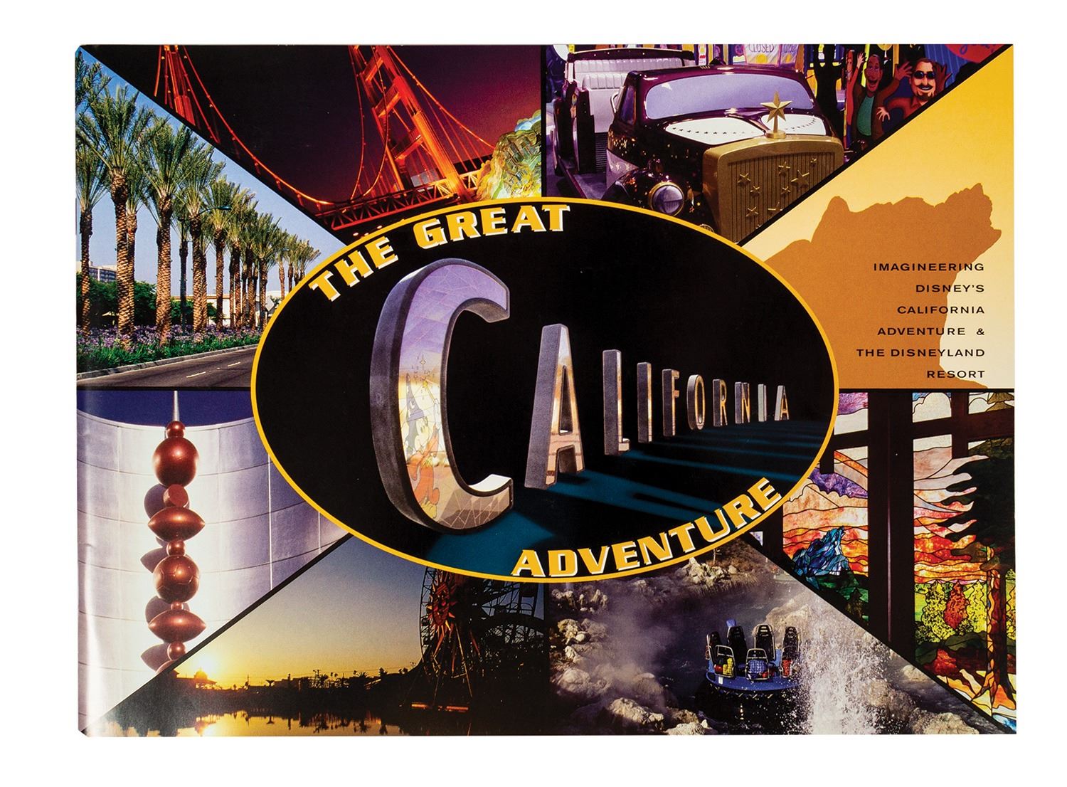 (California Adventure, 2001) A booklet titled "The Great California Adventure" created to introduce the new park. The booklet contains photographs of the park, as well as interviews with the Imagineers who worked on the project. The 26-page booklet measures 9"x12” and is in very good with minor edge-wear and a small spot of adhesive residue near the center of the cover.