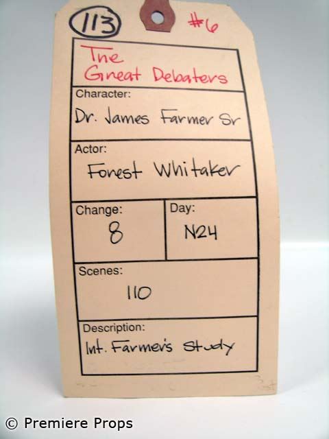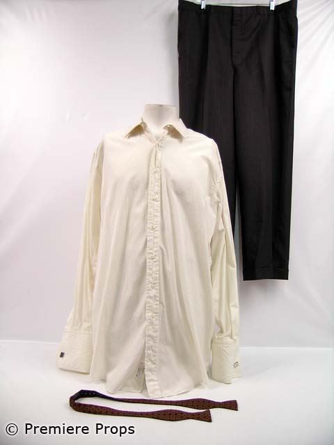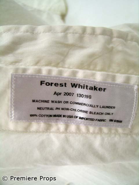 Dr. Farmer (Forest Whitaker) cream French cuff shirt "Brooks Brothers" with Forest Whitaker name printed on the inside tag. Charcoal grey pants, burgundy with brown and gold bowtie, silver square cufflinks (includes wardrobe tag / screen worn).
