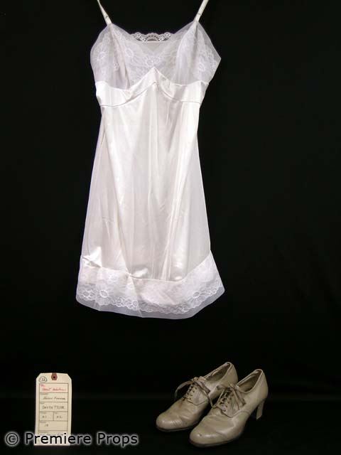 Helen Farmer ( (Devyn A. Tyler) white lace slip "Felina" with Taupe oxford heels (includes wardrobe tag / screen worn). Scene: farmer house.