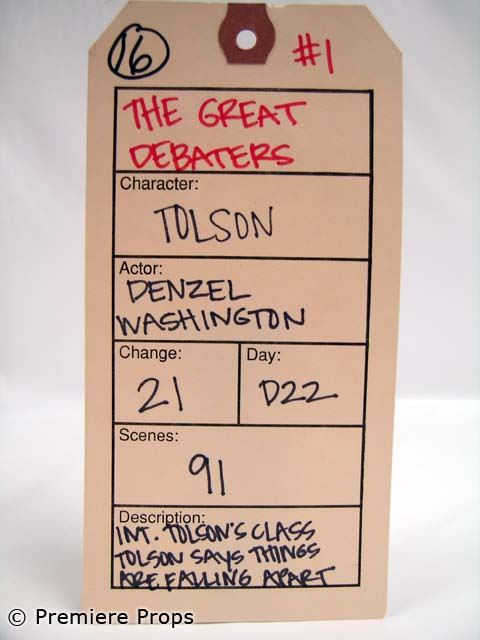 Tolson's (Denzel Washington) grey wool "Brooks Brothers" 2 button suit jacket, "Brooks Brothers" white dress shirt (*Denzel Washington written inside shirt). Custom fitted (includes wardrobe tag/screen worn). Scene: Tolson's class room.