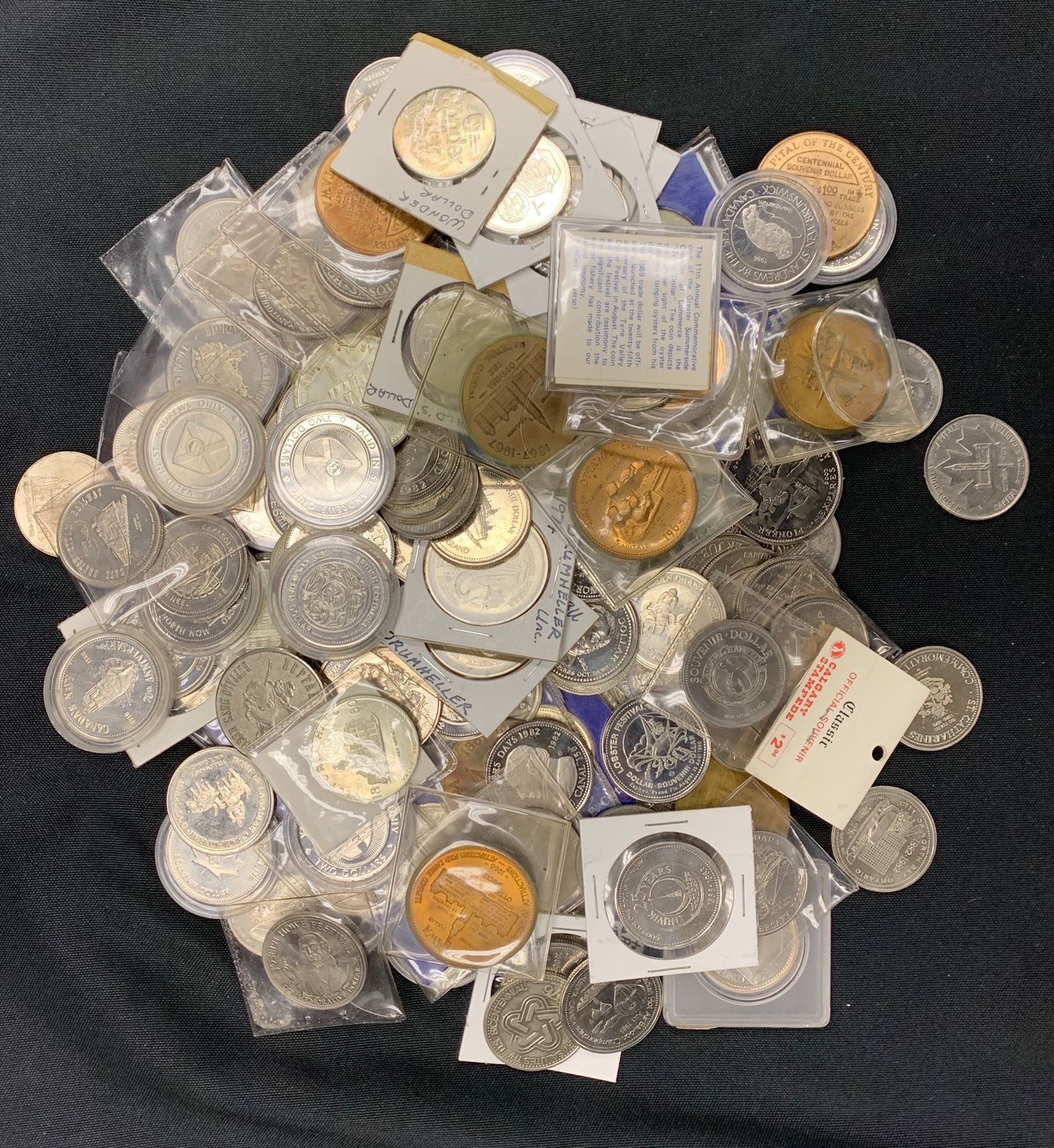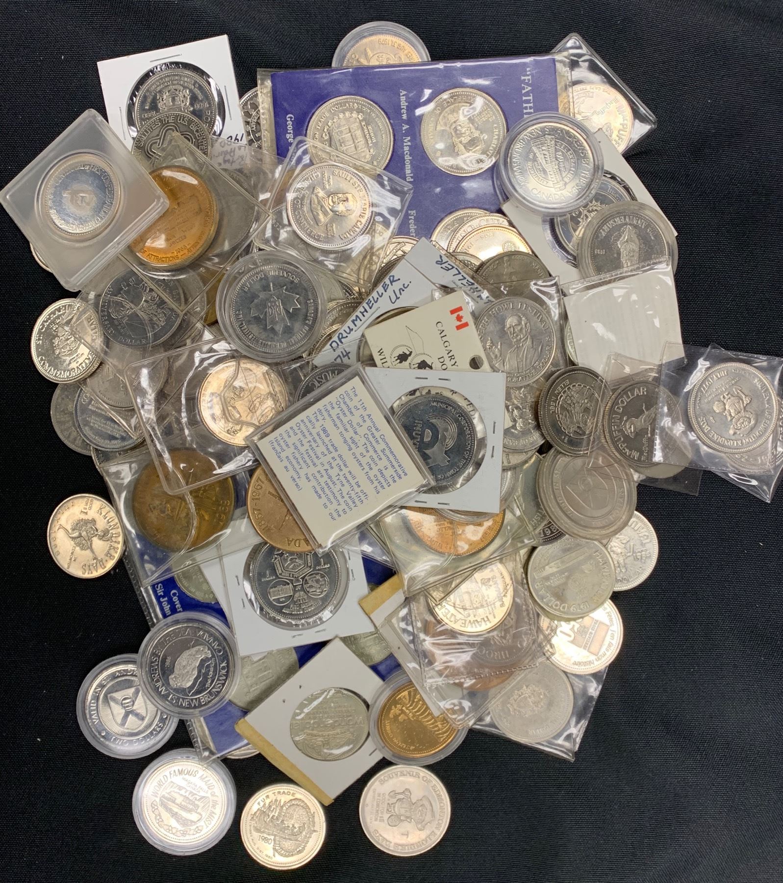 Bulk lot of Canadian Trade Dollars, lots of older dates, some in their original package of issue, 140 coins.
