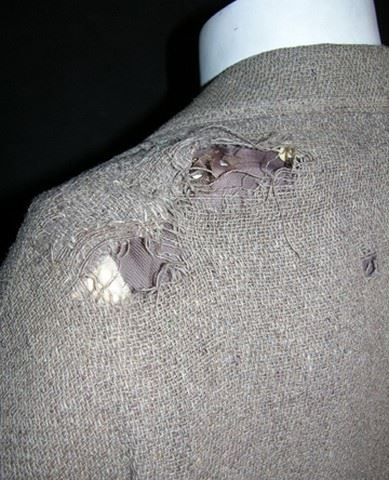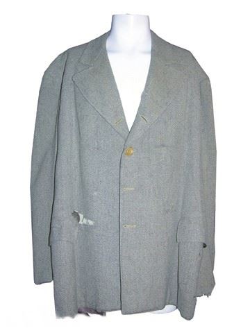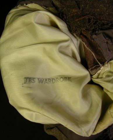 Brown period jacket screen worn by Golden Age actor Joel McCrea in the classic tale The Great Man's Lady, a legendary leading man who specialized in Westerns. His films include Barbary Coast, Buffalo Bill and Ride the High Country. He also appeared in Alfred Hitchcock's Foreign Correspondent in 1940. Includes a United Costumers label on the inner pocket with McCrea's name handwritten on it. Includes original auction receipt.