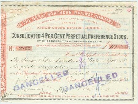 1888, Consolidated 4 Per Cent. Perpetual Preference Stock. Red/black.