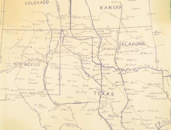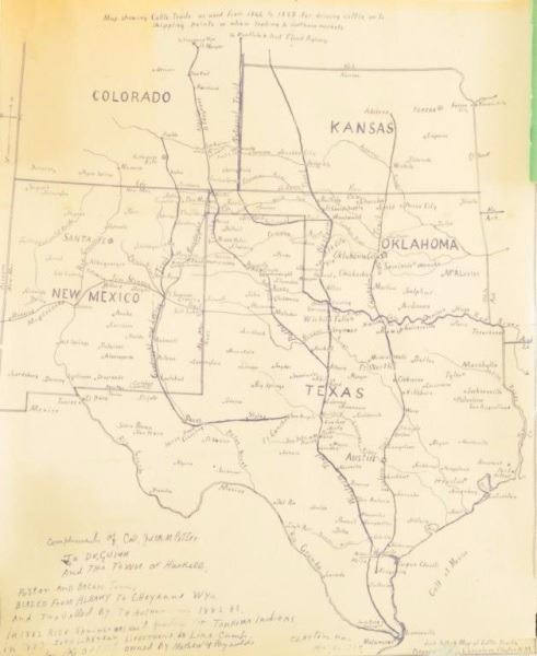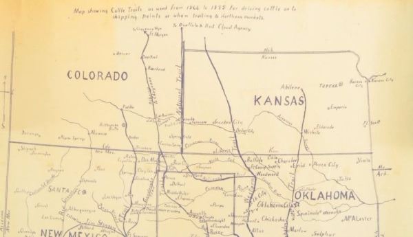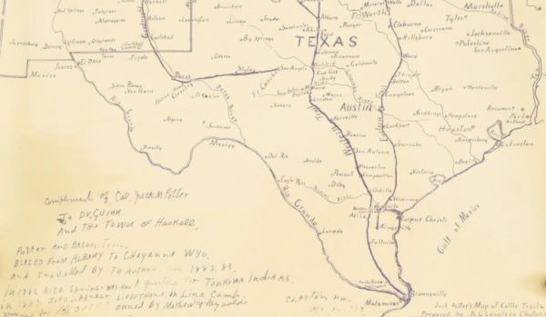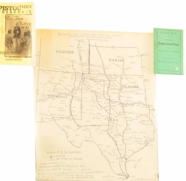 Includes map of Chisolm Trail, A guide map of the Great Texas Cattle Trail, and a book titled "Pistol Packin Preachers".