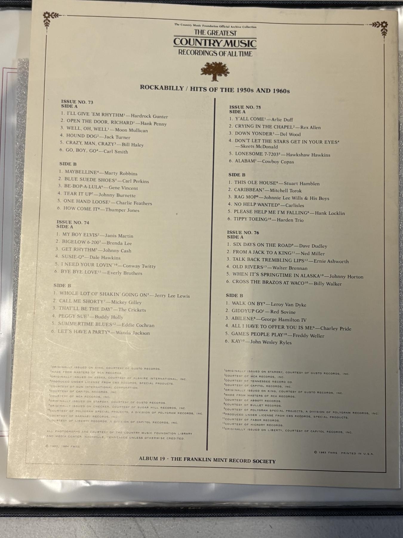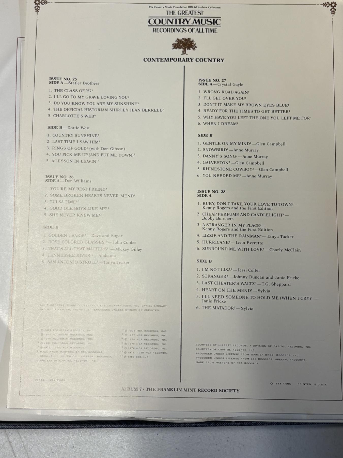 The Greatest Country Music Recordings of All Time - The Franklin Mint Record Society - Country Music Foundation Official Archive Collection - Vintage Country - Gospel - Contemporary- Willie Nelson - Johnny Cash