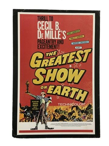 The Greatest Show on Earth (Paramount Pictures, 1952). Window card. Starring: Betty Hutton and Charlton Heston. There are creases, marks, stains, paper loss and edge wear damage. Fine. (12.5" X 18").
