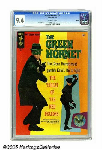 <B>The Green Hornet #2 Boston pedigree (Gold Key, 1967) CGC NM 9.4 Off-white pages.</B></I> Photo cover featuring Bruce Lee and Van Williams. Dan Spiegle art. Overstreet 2005 NM- 9.2 value = $220. CGC census 6/05: 7 in 9.4, 1 higher.